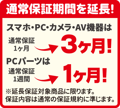 - ・保証期間が設定されている商品は、故障など規格どおりに